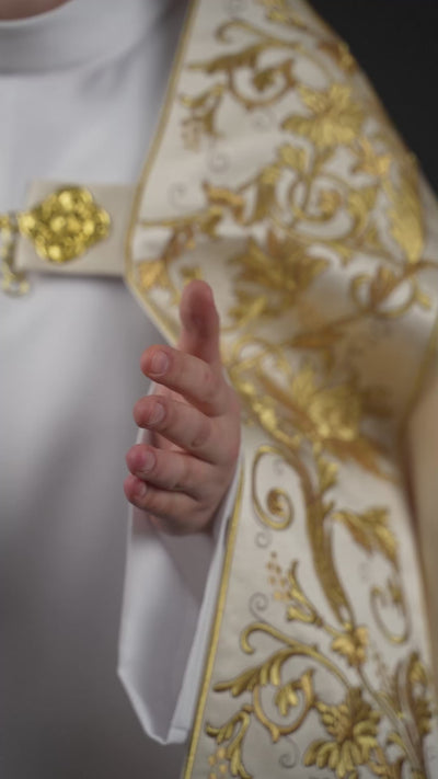 Capa romana em cetim cru com o coração do Senhor Jesus bordado