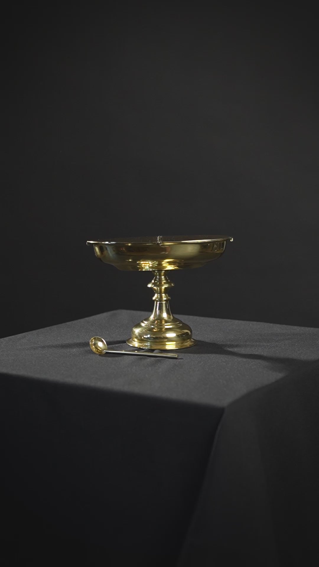 Este elegante porta-incenso é fabricado em chapa de latão de alta qualidade com um refinado acabamento dourado. O seu formato simples e sem adornos confere-lhe um caráter subtil e intemporal. É um acessório litúrgico prático que permite o armazenamento e o uso convenientes do incenso durante as cerimónias sagradas.